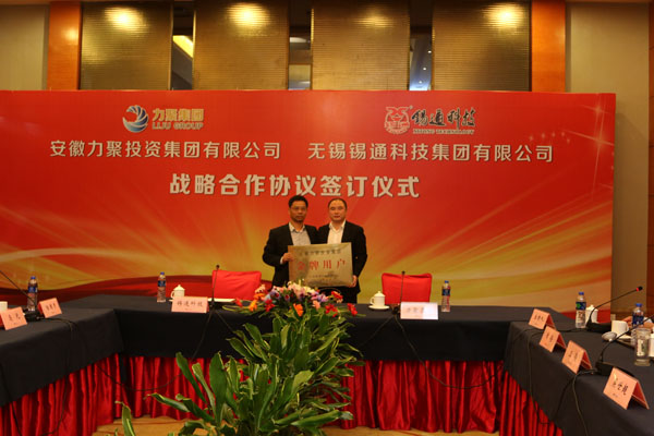 2015年10月28日上午9時,錫通科技集團與力聚投資集團在合肥世紀金源大飯店舉行了戰略合作協議簽訂儀式。